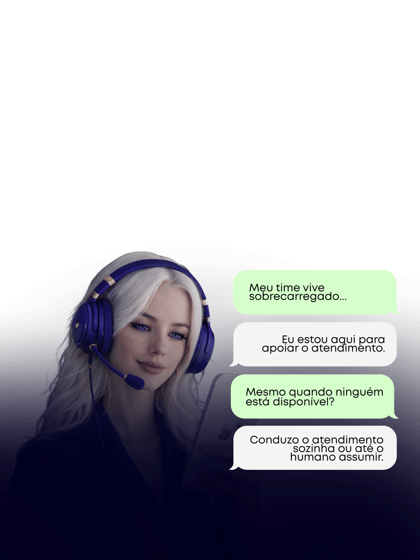 Uma assistente virtual que responde como gente - rápida, empática e treinada com os dados reais da sua empresa.